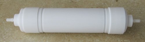 KDF/GAC water filtration for refrigerators with ice-makers and/or water through the door, water fountains, water coolers, commercial coffee makers and ice machines. High-pressure quick-connect fittings can be used on either 1/4" o.d. copper or plastic tubing. Rated to treat 8,000 gallons. Includes chlorine test strips to verify when it's time to replace cartridge 11" long, 2 1/2" diameter.